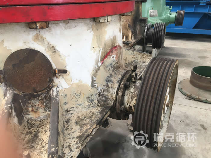 據(jù)客戶介紹該臺CF100s圓錐破碎機購買之后 直在河北某地使用,生產(chǎn)性能比較穩(wěn)定,基本上沒有出現(xiàn)過損壞,使用中只更換過易損件,由于受環(huán)保影響,將設備轉(zhuǎn)讓。我公司派技術人員到現(xiàn)場檢查該設備的實際情況,除了機身銹跡較多以外 ,沒有發(fā)展其它明顯的損壞,設備運回公司之后,將設備清洗之后拆開檢查,依據(jù)檢查結(jié)果制定檢修方案,按照計劃完成還設備的檢修之后,在試機平臺上進行了數(shù)個小時試機,試機中設備運行分廠平穩(wěn),各項數(shù)據(jù)均符合出廠標準。
