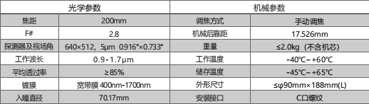 短波200手調(diào)定焦鏡頭 詳細(xì)信息 短波200手調(diào)定焦鏡頭是專為短波紅外波段(09~1.7um)設(shè)計(jì)的鏡頭,具有大光圈、低畸變、高分辨率成像等特點(diǎn),可用于全天傾監(jiān)控、工業(yè)檢測、物質(zhì)分揀、高光譜成像及機(jī)器視覺等多種短波外成像應(yīng)用。