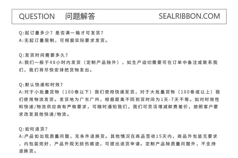海豹智能科技(廣州)有限公司致力于 進標識設備銷售和售后,經銷噴碼機,熱轉印打碼機,手持噴碼機等;同時也是專業碳帶生產廠家,熱轉印打碼機碳帶、平壓碳帶、標簽打印機碳帶、條碼打印機色帶、打印頭擦拭紙品種齊全、價格合理。本廠實力雄厚,重信用、守合同、保證產品質量,以多品種經營特色和薄利多銷的原則,贏得了廣大客戶的信任。支持定制/零售/ 件代發/批發。