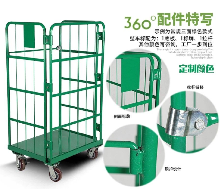 蘇州凌曄倉儲物流臺車RC-15三面可折疊帶輪移動籠車