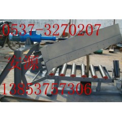 DYTN電液動可變槽角卸料器是安裝在膠帶輸送機的中間架上,能將膠帶輸送的物料均勻、連續卸入料斗或需要場所的皮帶輸料輔機。本卸料器在老式卸料器的基礎上增加了可變槽角棍子,犁刀用耐磨且摩察系數小的高分子聚氨酯材料做成,并改用電液推桿作動力源。克服了老式卸料器犁料不盡、刮傷皮帶、電動推桿過載能力差、常燒毀電機、頂彎絲杠、機械易損壞等缺陷。為目前國內 進的 種卸料器。主要特點: