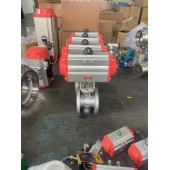 材 質: WCB不銹鋼 CF8不銹鋼 CF8M不銹鋼 適用于含有纖維性或有微小固體顆粒的懸濁液及固態顆粒狀 V型球閥閥芯設計成帶有特殊形狀的V型缺口,具有精確的流量特性和控制功能,適用于氣體、液體、固態顆粒狀等介質的控制。由于閥芯和閥座之間是無間隙回轉,所以具有很大的剪切力及自潔性能 () 精確的流量特性和控制功能 其由活塞式雙作用或單作用(彈簧復位式)氣動執行器和V型閥結構組成,它與電氣閥門定位器配套使用,可實現比例調節; V型球閥:密封等*可達到5~6* 采用閥體整體式結構:對夾式和法蘭式V型球閥閥體都采用整體側裝式結構,結構剛性強,不容易引起變形和外泄。閥座可根據介紹和工況的需要,選金屬硬密封或PTFE軟密封;金屬硬密封閥座表面堆悍硬質合金,球表面鍍硬鉻或噴焊、離子氮氣等硬化處理,使密封面使用壽命增強,耐溫提高;軟密封PTFE閥座或增強PTFE閥座密封性好,耐腐V型球閥:扭矩輕,閥桿靈活,配氣動電動可降低10%~15%成本 V型球閥采用上下自潤滑軸承:閥體內裝有上下自潤滑軸承,與閥桿接觸面積大,可載能力高,摩擦系數小,使閥門的扭矩減少 同時具備調節和開關兩種功能 可配置氣動或電動執行器配套,廣泛使用于工業國才自控系統中 |