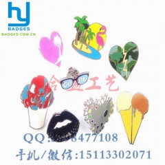 主要工藝有:蝕刻(咬板)、沖壓、注漆(填色)、絲印、滴膠、仿琺瑯、鋅合金壓鑄、柯式印刷等。