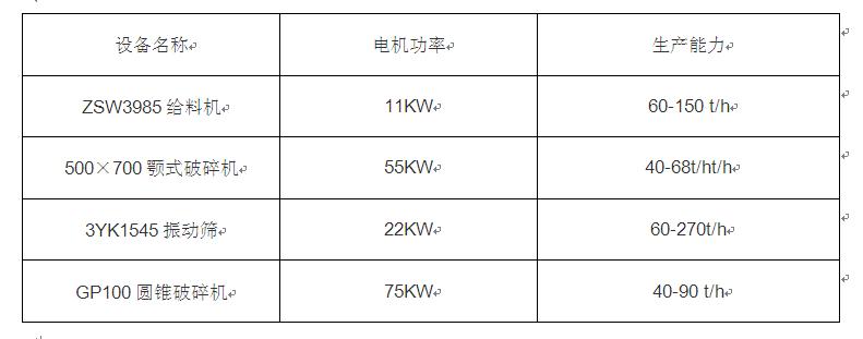2.設備配置:ZSW3985給料機1臺、500×700顎式破碎機1臺、3YK1545振動篩1臺、GP100圓錐破碎機1臺套、移動輪胎拖車1臺。