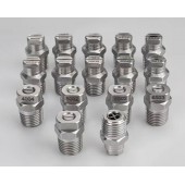 7100系列*體式通用金屬扇形噴嘴的特點是能產生高沖擊力的液柱或扇形噴霧,噴淋角度從0°-110°供選擇,此類噴嘴產生的噴霧分布均勻,液滴大小為小到中等,當需要若干個噴嘴產生重疊噴霧時、具有特殊特色的逐漸變細的噴霧邊緣使噴霧覆蓋區域分布均勻。噴孔是經精細工藝制成,可精確控制流率,噴嘴上帶有凹槽以防損壞。HVV和HVVL系列金屬扇形噴嘴在3巴壓力下流量不到3.9升/分鐘,HU和U型噴嘴在3巴壓力下,額定流速為3.9升/分鐘或更大,并具有外管道螺紋接口。MEG-TC型噴嘴具有有標準的MEG噴嘴相同的性能、并帶有碳化鎢嵌體、從而提供了*佳的耐磨性。MEF型NPT或BSPT(外)噴嘴具有硬化的不銹鋼結構、具有較長的耐磨損壽命和準確的流量控制。是為壓力沖洗應用*域而設計的、在低壓狀態下產生帶氣泡的40°扇形噴霧,在高壓狀態下產生與標準MEG噴嘴*樣的高沖擊力的40°扇形噴霧。*般提供塑膠、金屬及嵌入陶瓷三種材質制造。