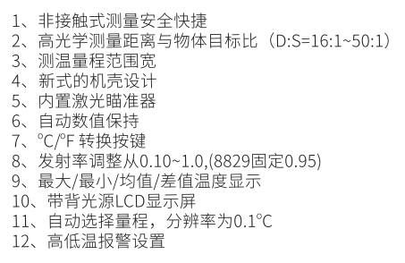 本系列產品可大范圍的測量溫度量程,適用于更多的工業(yè)領域,是安全理想的非接觸式測溫工具。